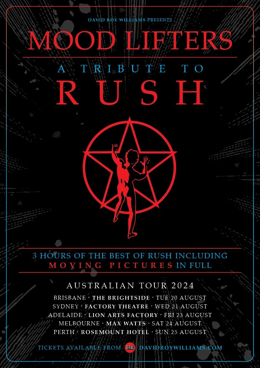 So we need something to fill that cavernous gap. Especially now RUSH are no more. And that, my friends, is about to happen. California’s fabulous RUSH tribute act MOOD LIFTERS are set to fly by night to new territories in new hemispheres to change our lives. We are about to welcome these strangers to the Australian limelight like long-awaited friends.