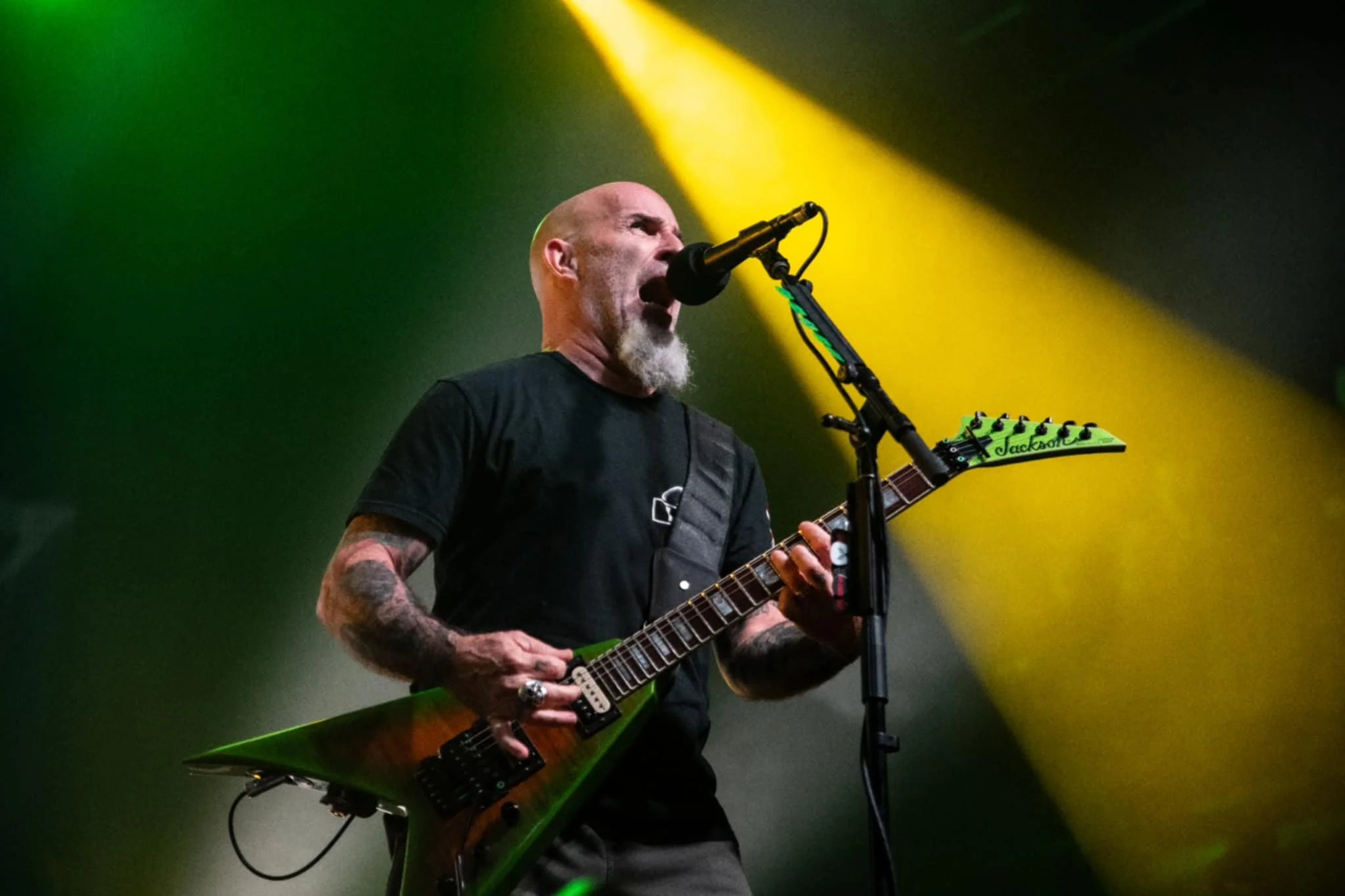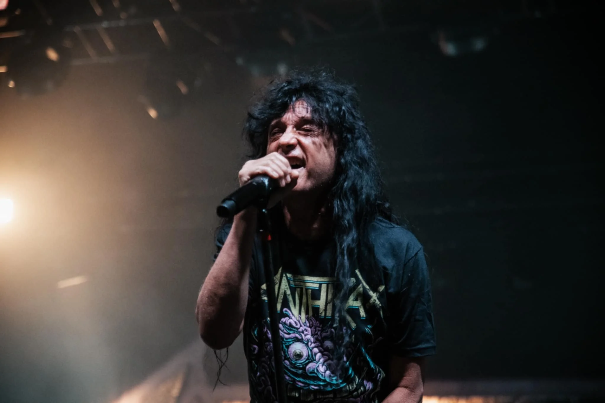 Whatever you do in life, try to have as much fun as Joey Belladonna appears to be having onstage tonight, slinking up and down the stage with his trademark half-mic stand and appearing to bond with each and every person he makes eye contact with. What an absolute legend. Joey’s voice is in fine form tonight, and we shout the lyrics back to him as Scott Ian punishes his guitar. The ANTHRAX favourites are rolled out in due course, with Madhouse and Caught in a Mosh sending the crowd predictably bananas, but it’s an audience request that makes for one of the best moments of the night, when someone asks them to play their 1987 track I’m The Man, widely regarded as one of the first rap metal songs ever written. The band is hesitant, but Scott Ian is keen. “We could give them one verse, couldn’t we?” The crowd roars, and Scott and Charlie Benante give it a red-hot crack while bassist Frank Bello does the vocals with a beer in one hand. It falls apart almost instantly, and the crowd roars. There is something to be said for a band that isn’t afraid to have some fun onstage. The next track also starts with “I”, but they’ve rehearsed this one, and I Am The Law sends the pit into hysterics, before ANTHRAX sign off with Antisocial. Scott ducks offstage and comes out with two massive fistfuls of guitar picks and heaves them into the crowd, and they rain down like confetti. During the show, Scott mentioned that they’re finally going to be following up 2016’s For All Kings, so it won’t be long before they’re back on our shores again.