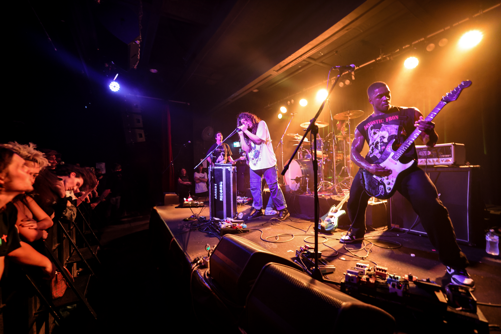 Even with voices screaming in my ear and headbanging making the earlier crowd look like ripples in the breeze, the music was impossible to ignore. The groove felt heavier than the brick walls around us, and the distortion felt so chunky you could chew on it. The energy of the music was matched on the stage where guitarist Jonathan Lhaubouet jumped as high as the ceiling would let him. Bassist Jeremy Martin on the opposite side of the stage mirrored the same ballistic spins and headbangs that nearly touched the floor beside Anthony DiDio on guitar who led many tracks with his vocals. In the middle was the most recognisable band member, guitarist and vocalist Marisa Shirar playing beside an upturned road case with a vocal effects board. Crowd surfing briefly took the focus off the stage until it became so frequent you’d think it was part of the furniture.