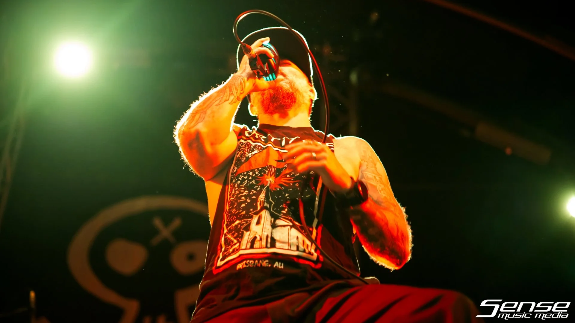 There was a massive contrast in sound between the traditional rock show amplification of HAMMERS, to the digital, futuristic world of HEARTLINE's crushing metalcore. Their vocalist's mesh shirt/pink trackie-daks combo might have been questionable, but the impressive range of his vocals certainly were not. We all love a band that engages with the crowd but the constant rallying cries to the pit verged on annoying. That said it, worked for them, and movement continually escalated in the pit throughout their set. It wasn’t all rave-metal-futurism for HEARTLINE though, as they busted out a storming PRIMER 55 cover to show that they had some old-school soul. The pit erupted, and they left victorious.