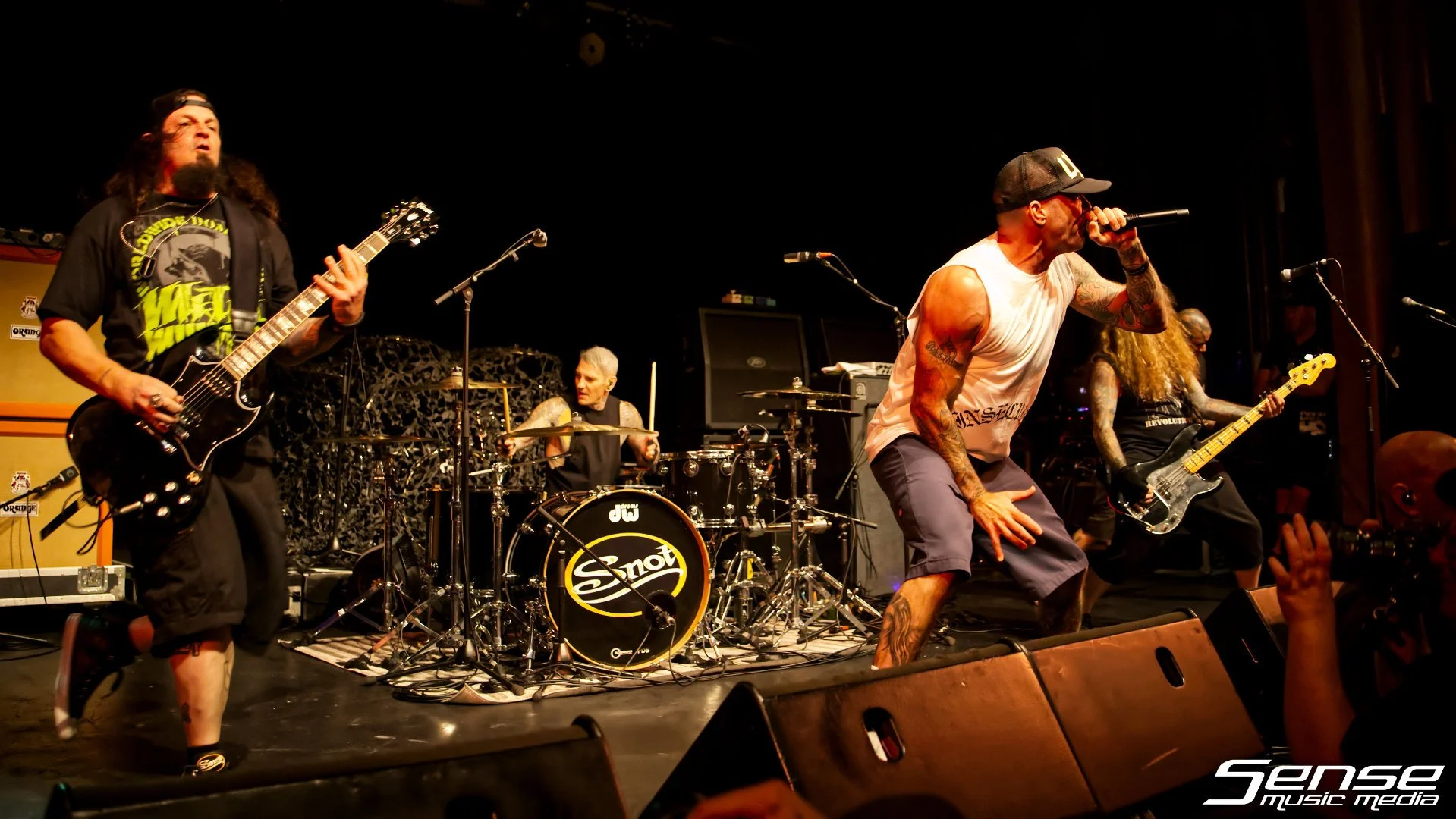 Max Cavalera is 56, so pulling double duty tonight (after a very hot day) is a big ask. His descendants look like they’re struggling with the heat onstage, so it must be pretty brutal for Max, but the seasoned veteran powers on, and any missed vocals are quickly pounced on. The set is incredible, and it was a thrill to hear Seek ‘N’ Strike, my favourite track off their album 3. It’s not too hot for humour though, and when his long-serving guitar tech Kenny comes out to fix something, Max playfully sends him offstage with a kick up the bum. His son Richie Cavalera of INCITE joins him onstage for the stunning Bleed, and arguably does a better job than Fred Durst, the crowd swirling and crashing like an ocean. Jumpdafuckup sees the whole crowd crouch down on the floor (which is easier said than done for some of us), but it’s worth it, because the sight of the entire Tivoli leaping into the air as one is stunning. They sign off with the slow, lumbering weight of Eye For An Eye, and leave triumphant.